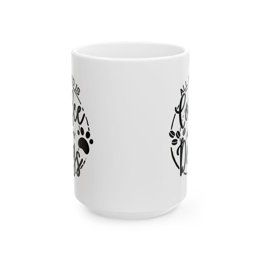 Ceramic Dog Lover Coffee Mug - All I Need Is Coffee and My Dogs Ceramic Mug (11oz, 15oz), Animal Gift for Her, Him, Birthday Present