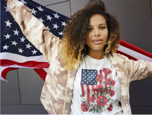 United States Flag with Flowers